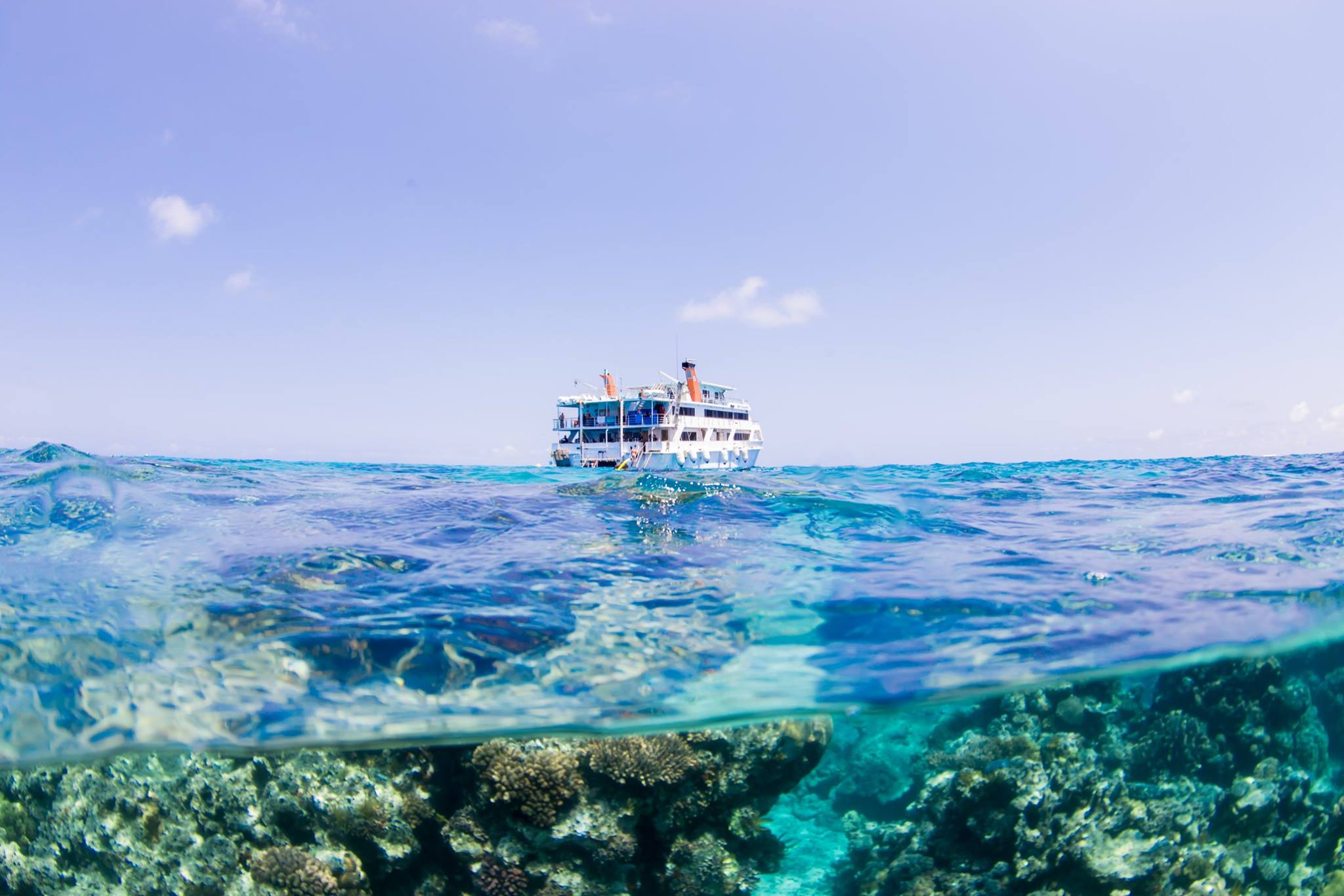 Доставили группу любителей подводных путешествий с пристани Кэрнса до основного трехпалубного корабля часа за 2 и после инструктажа о том, что всё включено и впереди вас ожидает незабываемый отдых - нас распределили по каютам. На корабле все ходили босиком, это и прикольно и удобно (экологично). Была опреснительная система, свой генератор электричества.