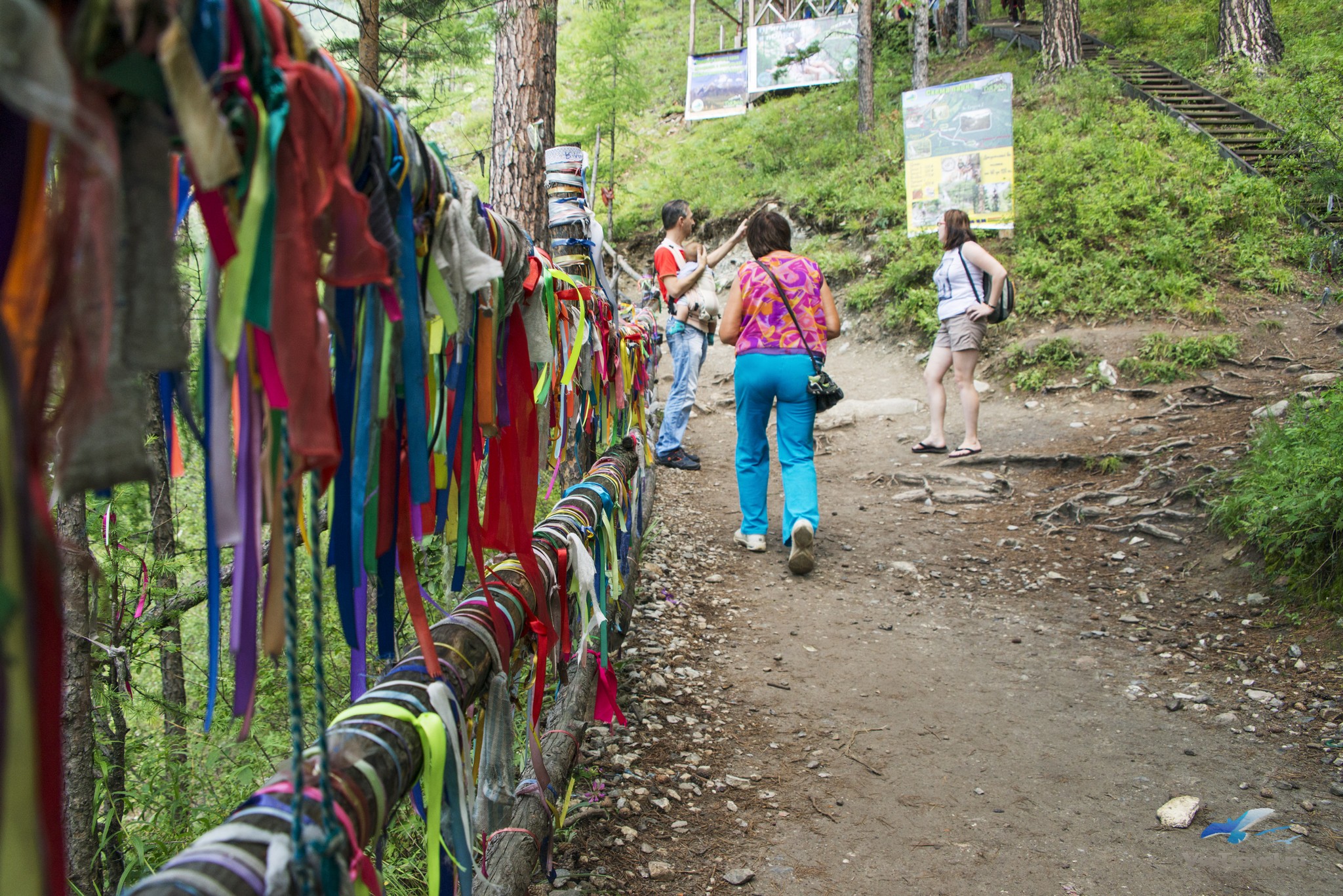 В Аршане (в переводе – «целебная вода», нектар, источник) и здесь находятся термальные воды. Люди приезжают поправлять здоровье, принимают горячие ванны под присмотром врачей. Есть и "забытые" санатории, которые принимают туристов. Мы же отправились в небольшой горный поход, до первого из девяти(!) водопадов. Путь до него и обратно занял более 2х часов с ребёнком на руках. Кстати и здесь был сбор по 50 рэ с носа, детям - бесплатно. Табличка гласила, что на эти деньги убирают и поддерживают территорию, дорожки. Да, поддерживают, подтверждаю.