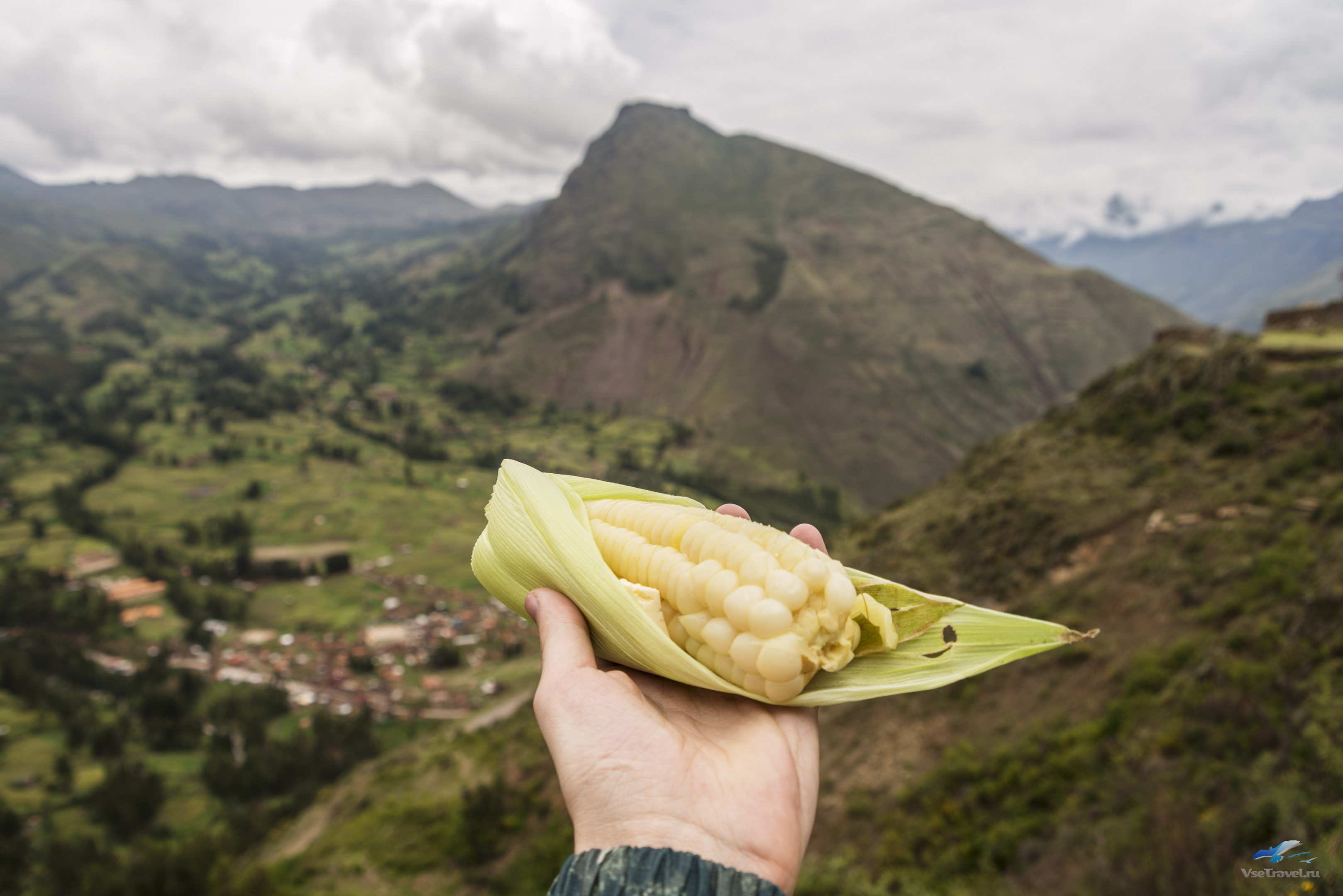Относительно далее (33 км) было место Пи́сак (Pisac) – это большая крепость Инков. Добравшись до неё, мы не удержались от того, чтобы вкусить огромную кукурузу! Это что-то!